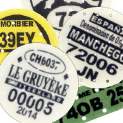 Cheesemarks are made of casein, a milk protein, which may be mixed with glycerol. The substance and the perforations ensure that mark and cheese become one. A large variety of shapes are available, while a number/letter code together with text and possibly a logo makes each image - and so each cheese - unique. Kaasmerk Matec has the technology to design and develop the optimal cheesemark for every producer, no matter the size or geographical origin.